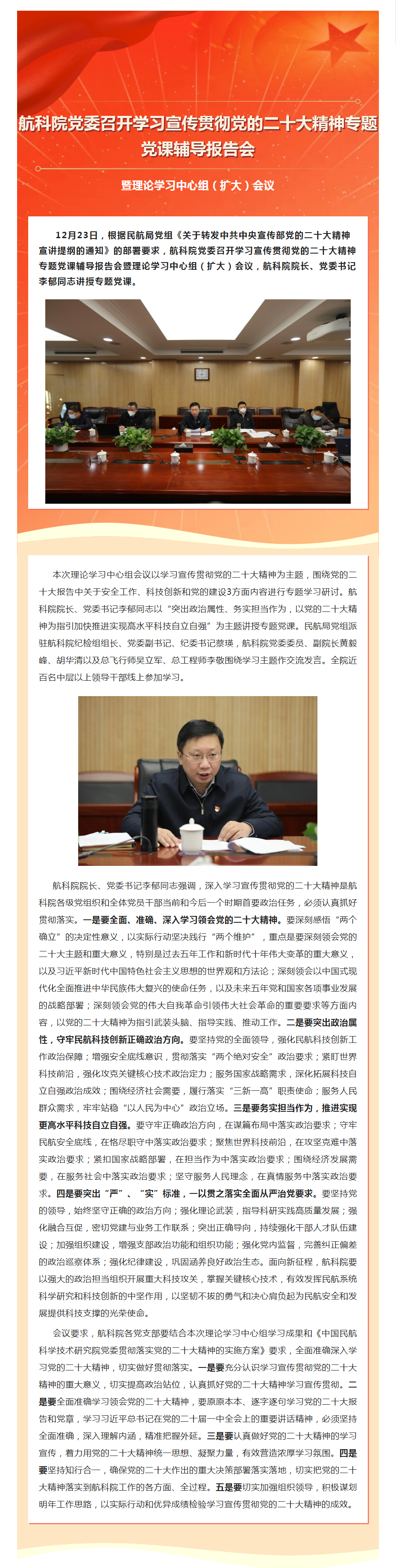 航科院党委召开学习宣传贯彻党的二十大精神专题党课辅导报告会暨理论学习中心组(扩大)会议