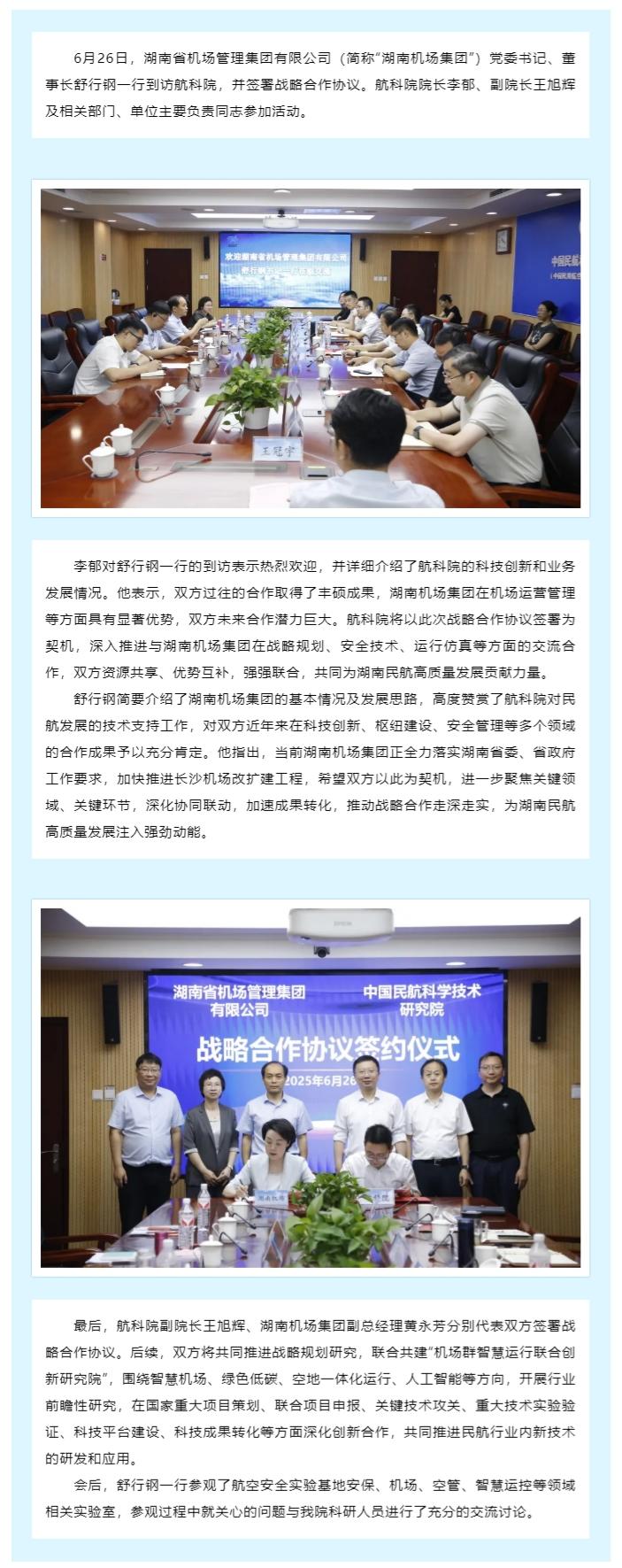 航科院与湖南省机场管理集团有限公司会谈交流并签署战略合作协议