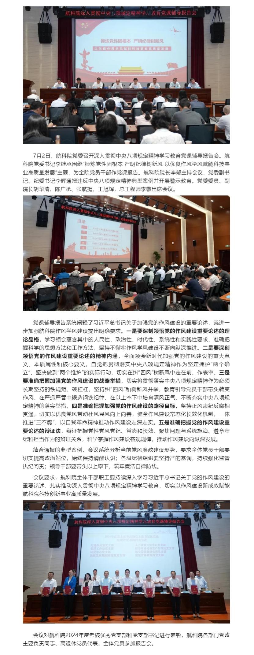 航科院党委召开深入贯彻中央八项规定精神学习教育党课辅导报告会