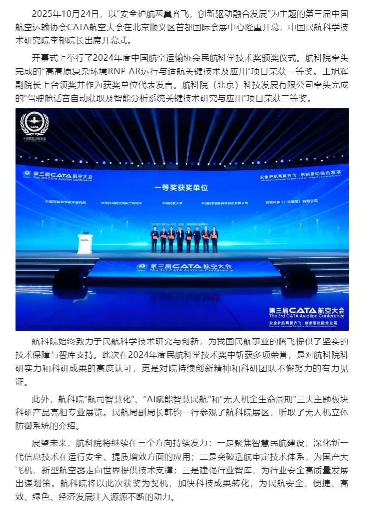 中国民航科学技术研究院(中国民用航空局航空安全技术中心)是民航局直属事业单位,是国家科技部批准的综合性科研机构,主要从事民航安全和发展的科学技术研究,为民航局决策和监督管理提供技术支持,向民航企事业单位和航空产品制造厂商提供科技服务。