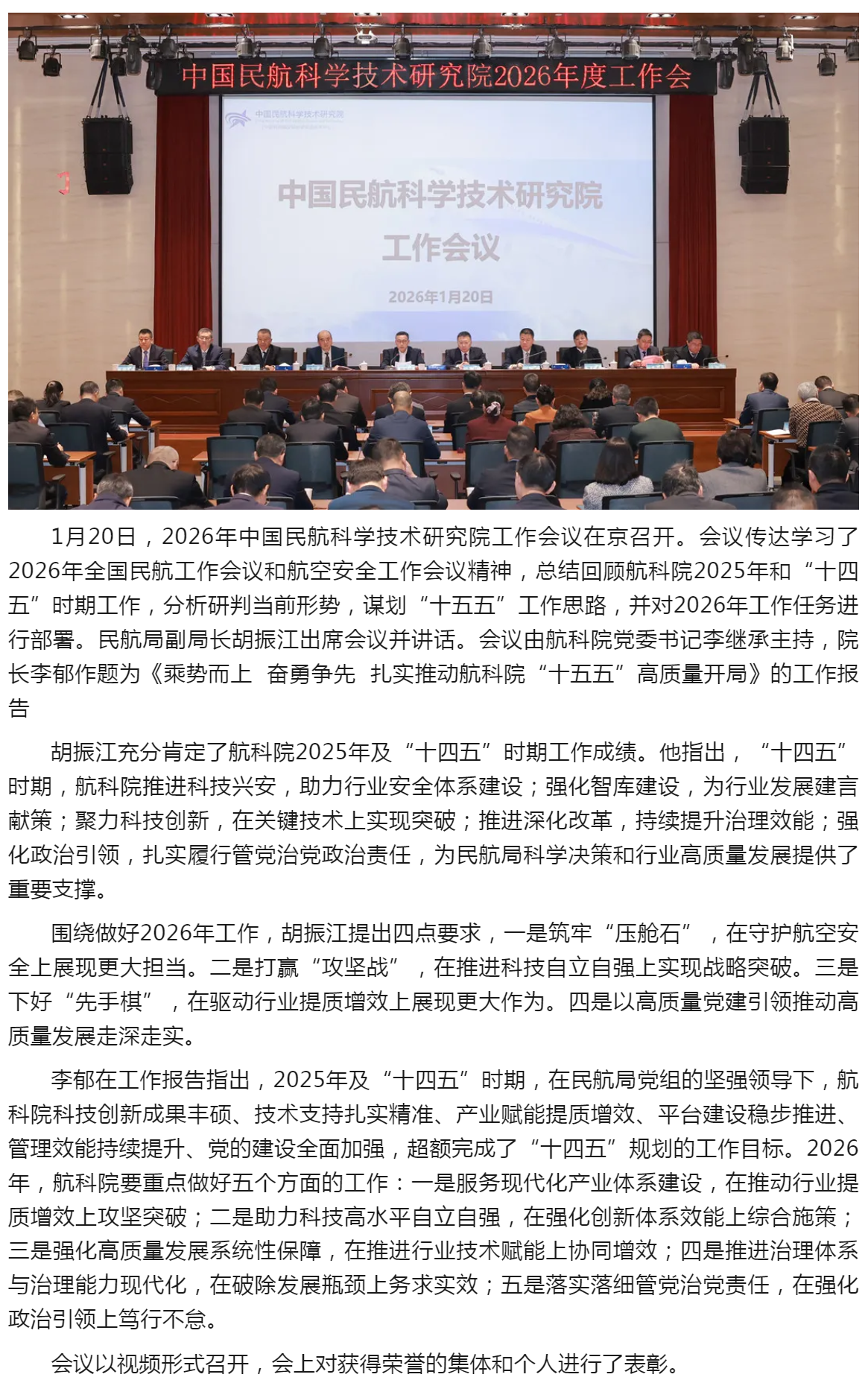乘势而上 奋勇争先 扎实推动航科院“十五五”高质量开局——2026年中国民航科学技术研究院工作会议在京召开