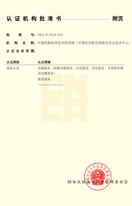 中国民航科学技术研究院是经中国国家认证认可监督管理委员会批准成立的第三方认证机构,具备教育服务的认证能力。